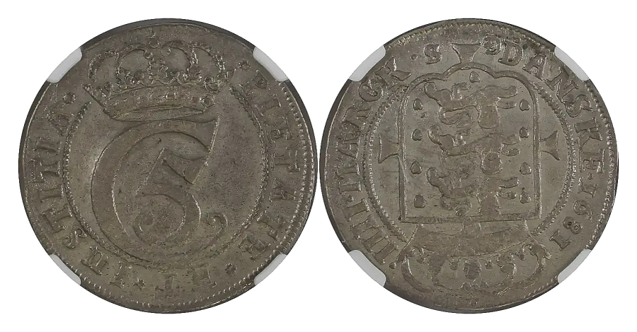 Rev: Crowned complex arms with cross of the Teutonic Order at centre, flanked by small shields of Upper Alsace and Ferrette. Compelling for its type and nearly Mint State, with even gunmetal