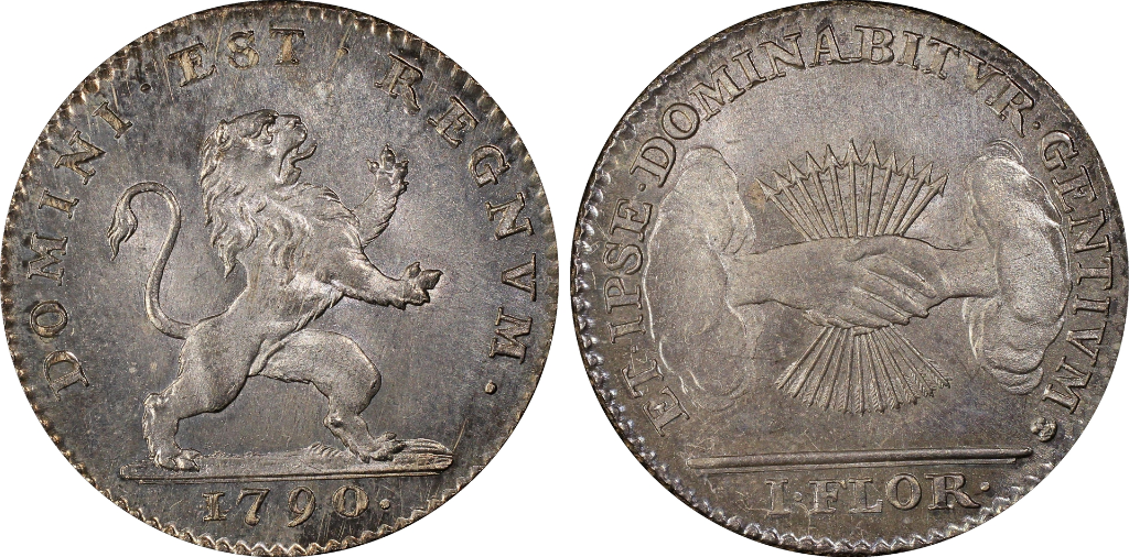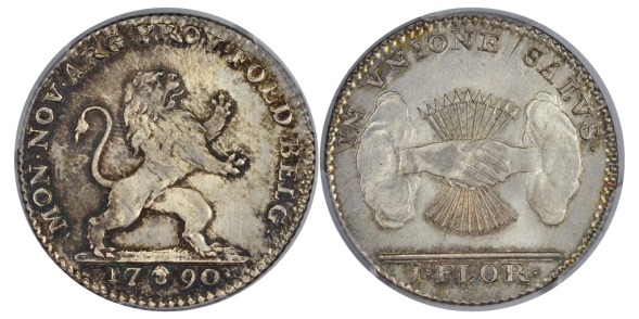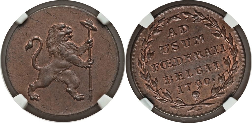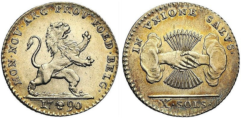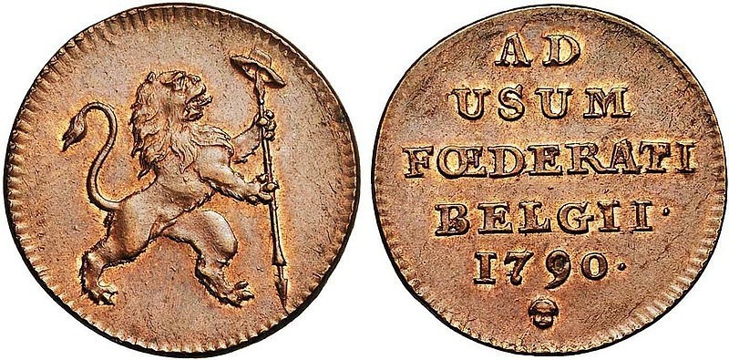 In 1789, Brabant Revolution took place in reaction to liberal reforms made by Joseph II and the Austrian occupation of Belgium. After Austrian forces were defeated by the rebels at the Battle of Turnhout in 1789, Austrian forces withdrew from the country. On 11 January 1790, the counties and dukedoms which had made up the Austrian Netherlands became one country, the United States of Belgium. The United States of Belgium coinage was issued in eight denominations divided into Liards, Sols, and Florins. It was only produced during the short one year lifespan of the country meaning that all examples are dated 1790.