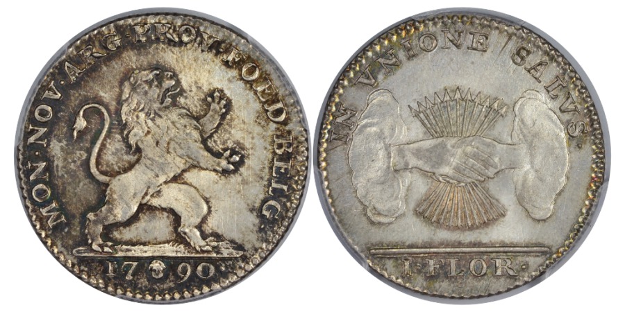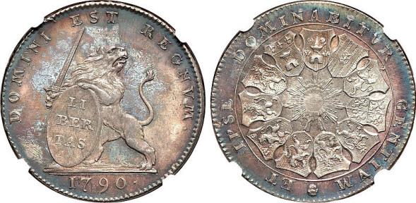 Brabant, Hainault, Tournai, Namur, Luxembourg, Liège, Limburg, Antwerp and Mechelen. KM 48. Struck during the revolution against Emperor Joseph II's anti-clerical innovations in the church. A stunner